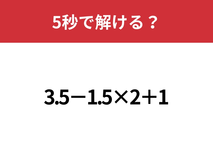 油断してると間違えるかも?「3.5−1.5×2+1」5秒で解ける?