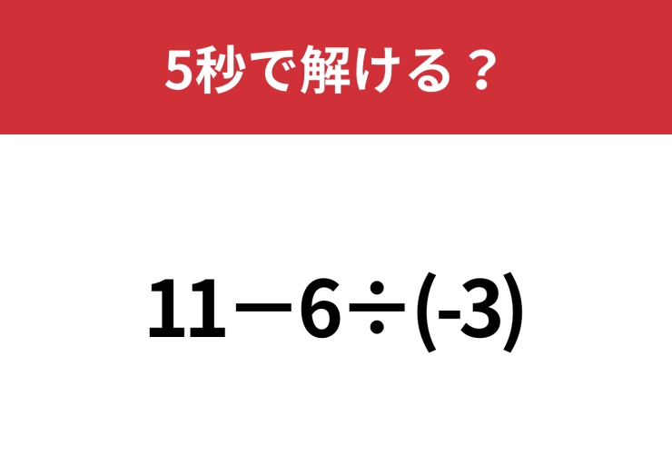 凡ミスする人が多いかも?「11−6÷(-3)」5秒で解ける?