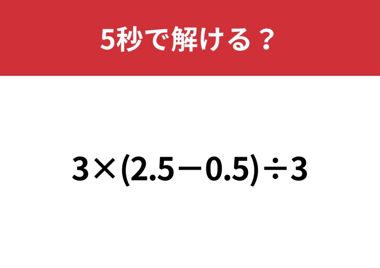 基本を忘れている人は解けないかも?「3×(2.5-0.5)÷3」5秒で解ける?