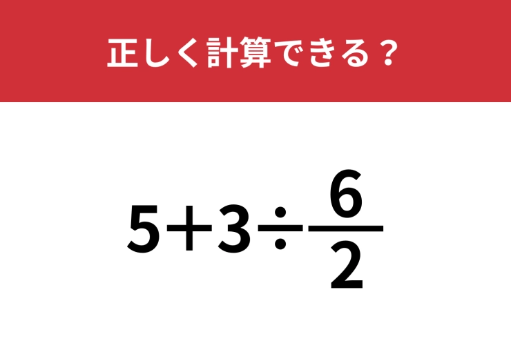 見た目に騙されずに解ける!?「5+3÷(6/2)」正しく計算できる?