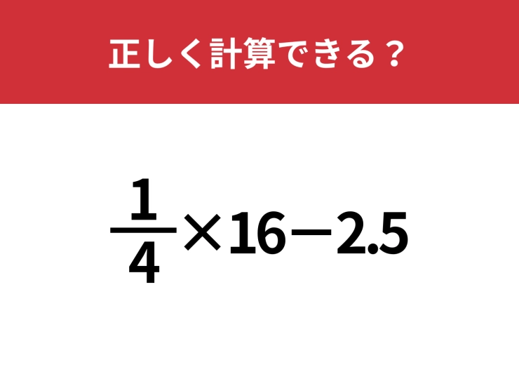 分数の計算って覚えてる!?「1/4×16−2.5」正しく計算できる?