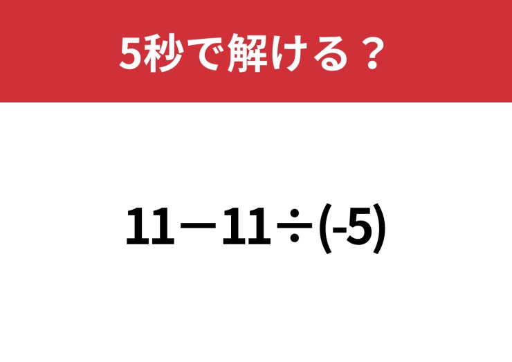 マイナスがつく計算正しくできる?「11−11÷(-5)」5秒で解ける?