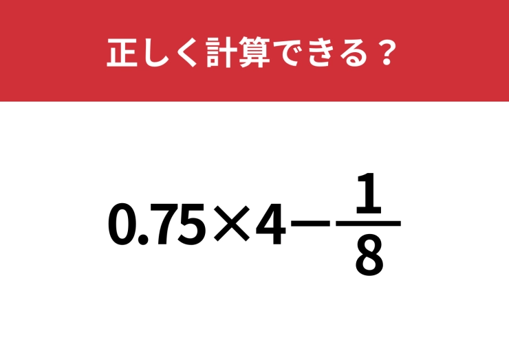 小学生は解けるのに、意外と間違える人が多いかも!?「0.75×4−1/8」正しく計算できる?