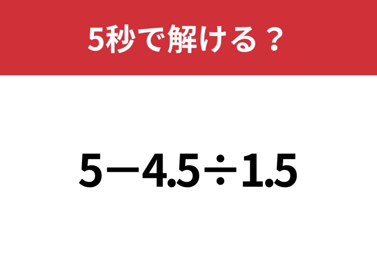 小数の計算って思ったよりも難しい?「5−4.5÷1.5」5秒で解ける?