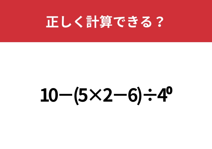 頭のいい人でも忘れてるかも!?「10−(5×2−6)÷4^0」正しく計算できる?