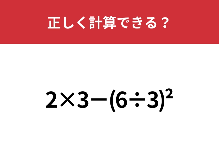 右上にある2の意味って覚えてる?「2×3−(6÷3)^2」正しく計算できる?