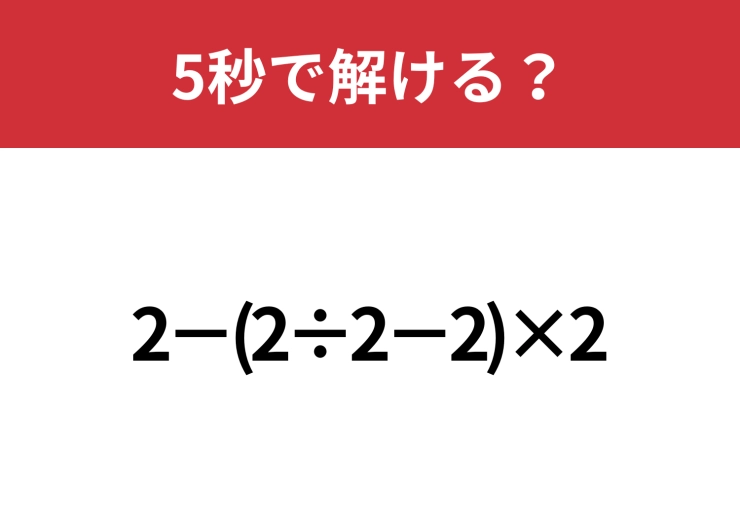 これが解ければ困ることなし!「2−(2÷2−2)×2」5秒で解ける?