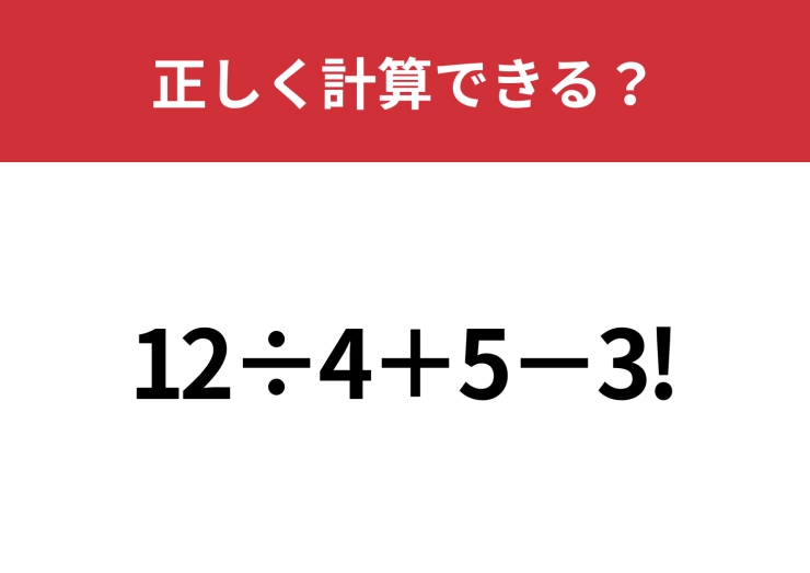 びっくりマークの意味って覚えてる?「12÷4+5−3!」正しく計算できる?
