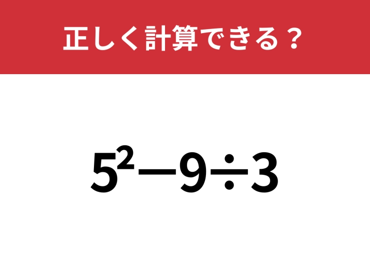 大人でも解けない人が多いかも!?「5^2−9÷3」3秒で解ける?