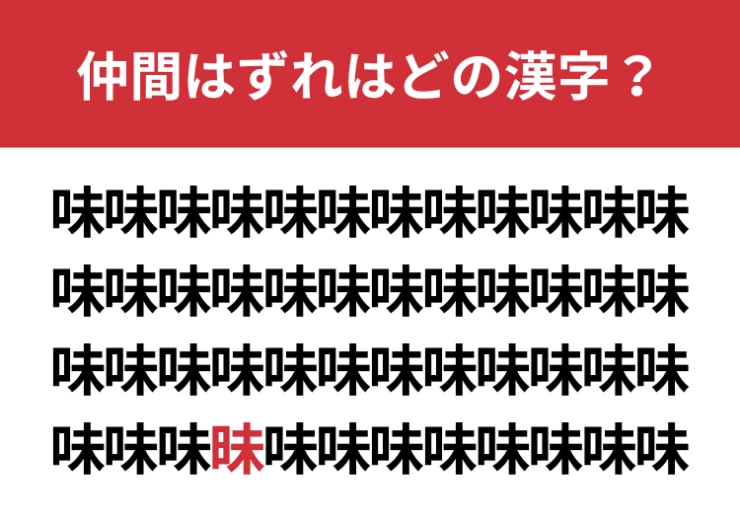 【漢字間違い探し】「味」の中に混ざった漢字は何?