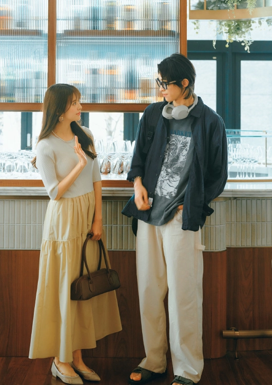 [別府さん]シャツ¥31, 900/グランク(にしのや) Tシャツ¥13,200/ホロマーケット(STUDIO FABWORK) パンツ¥14,300/リー(エドウイン) メガネ¥48,400/ミスタージェントルマン アイウェア(ジョイ エブリ タイム)ブレスレット¥21,780/スキャット リング¥43,560/ヨハン シルバーマン(ティーニー ランチ)サンダル¥31,900/リプロダクション オブ ファウンド(アイファウンド) ヘッドホン WH-1000XM5 ¥59,400/ソニー