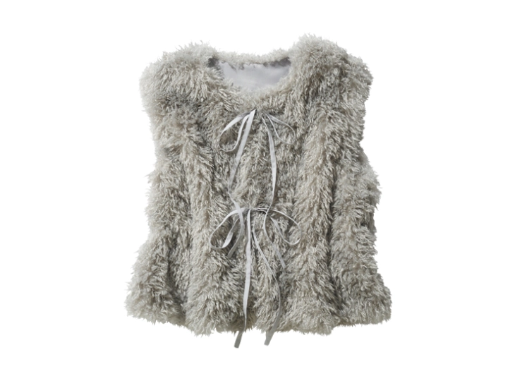 甘派にはたまらないデザイン。リボンファーベスト¥17,600/アプワイザー・リッシェ
