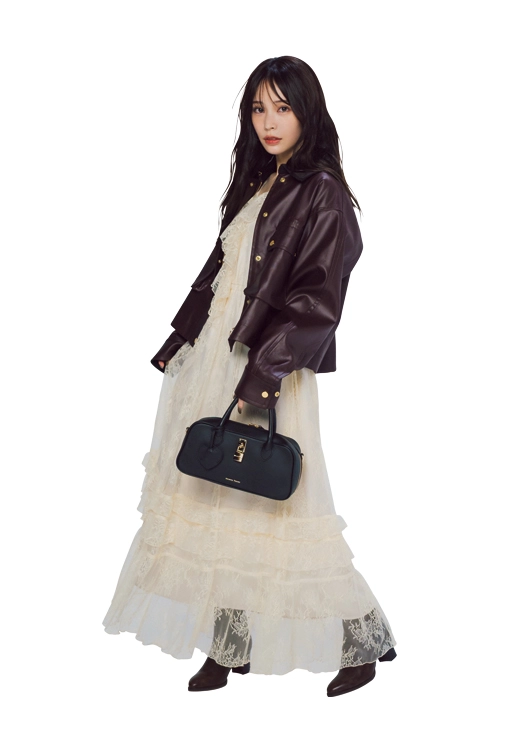 姫感のあるレースワンピの甘さをセーブ。クラシカルなニュアンスで今っぽく更新できます。