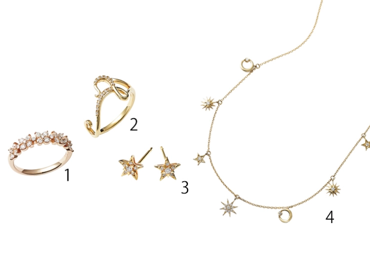 (4)太陽、月、星のモチーフにダイヤが。ネックレス[K18×ダイヤモンド]¥176,000/ともにスタージュエリー表参道ヒルズ店