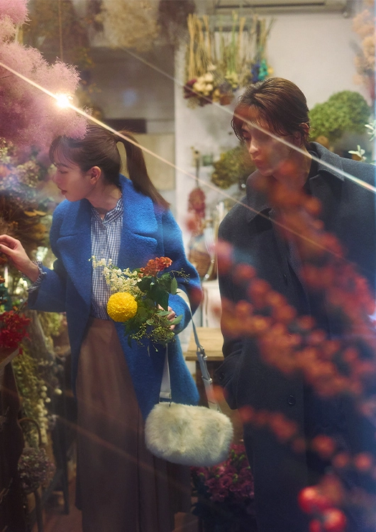 今回のクラシエ着回しでの撮影でいちばんこだわった、「ロマンチックなイルミネーションを見ながら、入浴剤をおすすめする」シーン。別府さんが「別府」の入浴剤を胸ポケットから取り出し、聡子先輩がさらに「旅の湯」の入浴剤を取り出す・・・という謎設定にも真剣に取り組んでくれたお2人。いつもありがとうございます。
