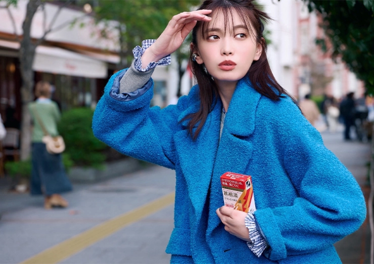 イベントの多い冬の着回しで、聡子ちゃんは季節のお菓子と健康維持のための漢方薬の紹介を担当。クラシエの商品パッケージと服の相性も抜群で、どれもフォトジェニック。今号のOL聡子を読んで寒さ対策をしっかりして、いろんなことに「夢中♡」な毎日をお過ごしください。