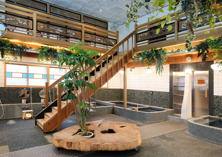 地元で愛されていた銭湯が、2022年4月に極楽浄土をイメージしたスパ施設として生まれ変わった癒しスポット。男性専用の温浴施設なのですが、毎月10、20、30日がレディースデイになっています。サウナ好きの別府さんもPARADISE(パラダイス)ができたばかりの頃に来たことがあるとのことで、さすが!店内カットも堂に入ってます。