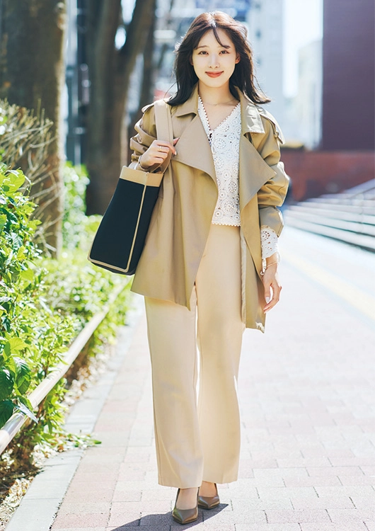 【働くアラサー女性のリアル通勤服】「白×ベージュの配色」だとあか抜けた印象に