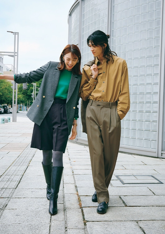 [別府さん]ジャケット¥143,000、パンツ¥74,800/ともにカズキ ナガヤマ、シャツ¥49,500 /シーク ヤブーティ(以上STUDIO FABWORK) シューズ¥24,200/パドローネ×ナノ・ユニバース(ナノ・ ユニバース)