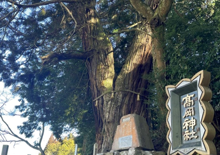 入り口にそびえ立つのは、真庭市の天然記念物にも指定されている御神木。高さは約30m、幹の周囲は8.65mもあり、髙岡神社が創建された平安時代からこの地を見守っています。