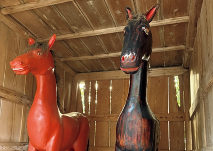 この神馬の由来は、日露戦争の折に空を駆けて加勢し日本を勝利へと導き、平和が訪れると再び小屋に戻っていたという逸話。辰、巳と連続で御神木に干支が現れたことに加えて、午にまつわるゆかりもあることが最強神社のゆえん。