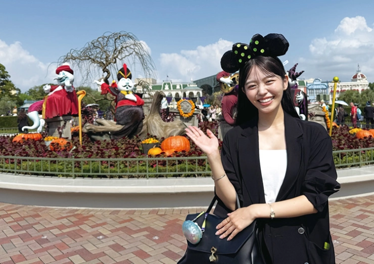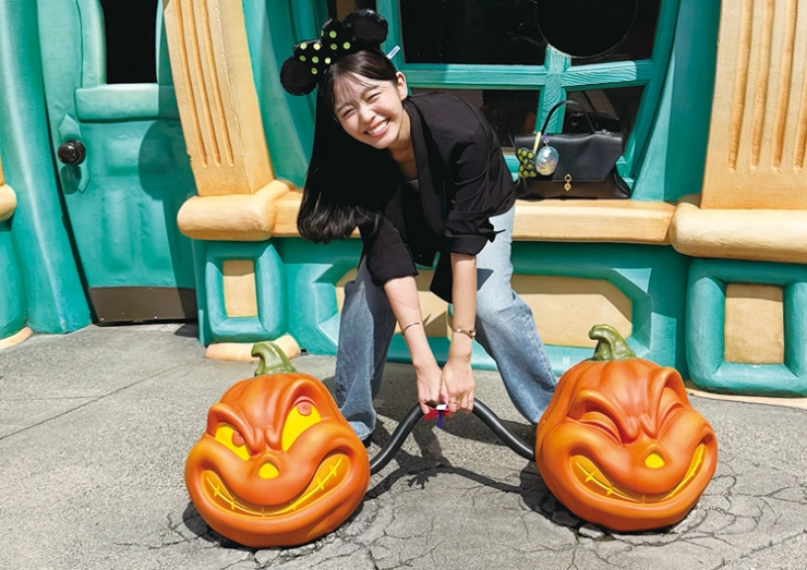 パーク内のあちこちに、ハロウィーン気分を盛り上げるデコレーションが登場。ぜひお気に入りのスポットを見つけて撮影してみて。今回、佐野さんはシンデレラ城前のヴィランズ仮装ゴーストや、トゥーンタウンで囚人ゴースト&ジャック・オー・ランタンとパシャリ!