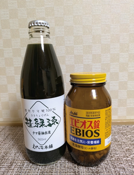 「取り入れているのは『エビオス錠』と青汁の『笹緑源』。青汁は炭酸水で割ると飲みやすい!腸活を始めて約1カ月で違いを実感。単に腸の調子がいいだけでなく、肌の質感や髪のツヤ、爪など、全身に嬉しい変化がありました」(企画事務・ゆかこさん)