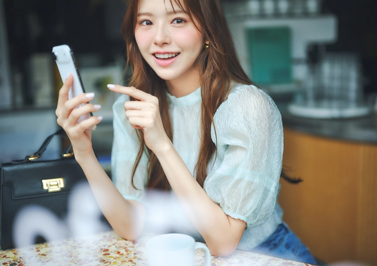 衣装クレジット:ブラウス¥3,280、デニムパンツ¥3,990、バッグ¥2,990/以上神戸レタス ピアス¥3,630/mimi33(サンポークリエイト) ※andGIRL2026年春号より
