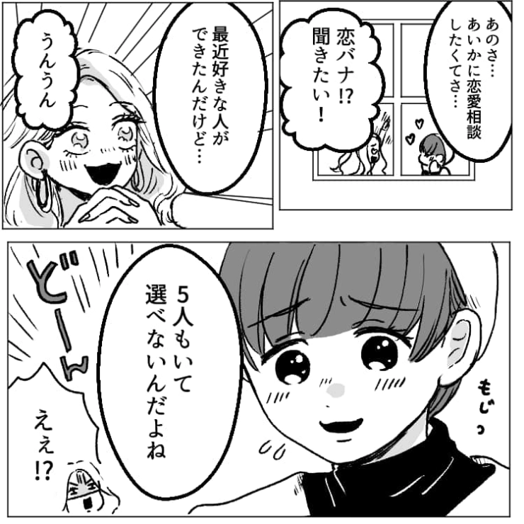 OTHER 2024.09.13「好きな人が5人いて選べないから全員と付き合おうかな!」恋愛相談してきたおっとり系女子の驚き発言!最終的には浮気宣言までしだして・・・実際に読者が体験したリアルエピソードを漫画化!今回は浮気をしている自覚がない、おっとり系の友達のエピソードをご紹介します。趣味や服装が正反対ながらも仲のいい友達。恋愛の相談を受けると衝撃の一言が!?123#漫画