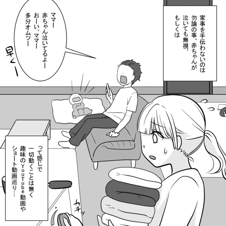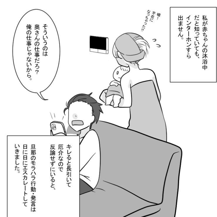 自分の子供が泣いていても無視、インターホンがなっても無視。言葉通り、本当に何もしないモラハラ夫。その行動はますますエスカレートしていき・・・。