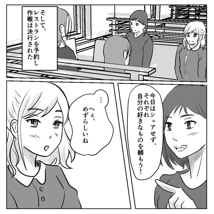 「みんな一口ずつちょうだい!」自分はコーヒーしか頼まないのに人の注文した食べ物を絶対に欲しがるセコい女友達→ついに被害者の会が発足されて・・・