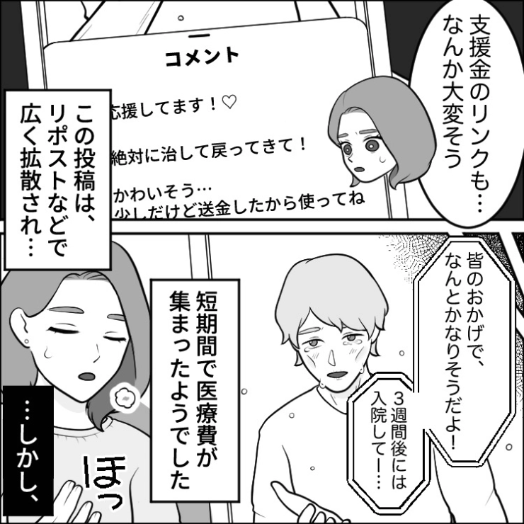 OTHER 2025.07.13「病気だから助けが必要」インフルエンサーがフォロワーに支援を要求した結果、たくさんの人が募金!しかし、経過報告も病名も明かされず違和感ばかり→実は・・・衝撃のエピソードを漫画化!今回はインフルエンサーが病気になったと言ってフォロワーに支援を要請したもののなんだか違和感を感じずにはいられなかった主人公のお話をご紹介します。病名を言えなかったり、経過報告もなかったりと日に日に違和感が募ったその理由は・・・。123#漫画