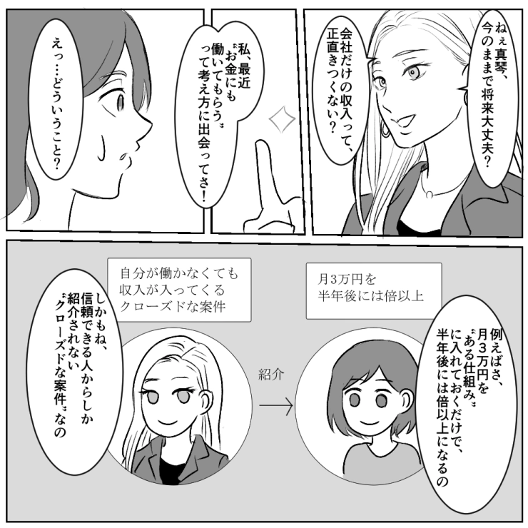 「将来不安でしょ?お金にも働かせる方法知ってる?」久しぶりに会った友達がとんでもなく派手+胡散臭くなっていた→ドン引きしたその理由は・・・