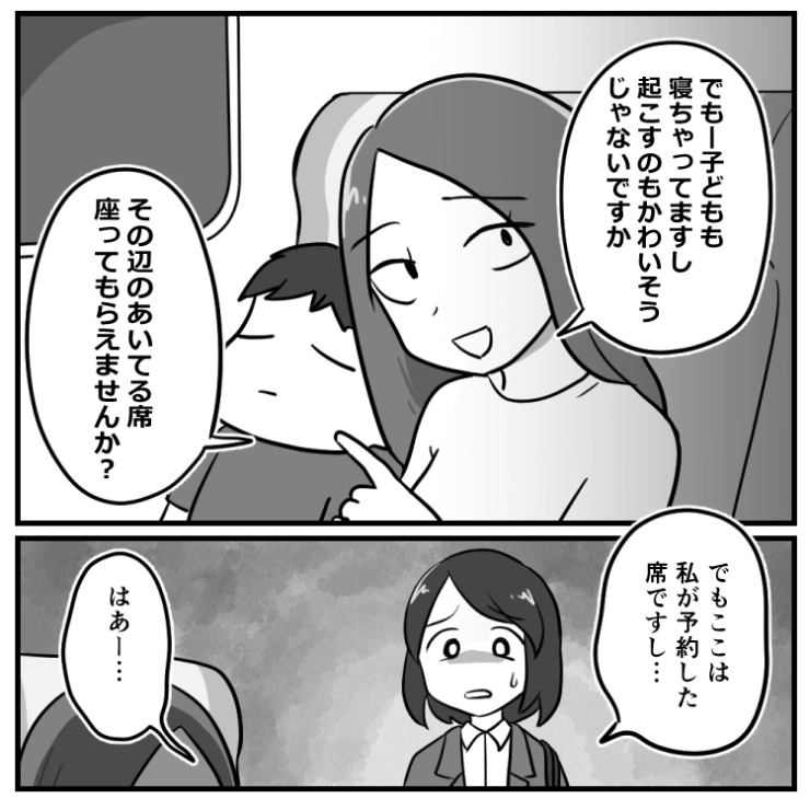 OTHER 2025.08.03「そこ私の席です」→「他の席座って!」新幹線の指定席でなぜか私の席に座っている親子!退いてと言うと子供を盾に逆ギレして困っていたら思わぬ救世主が現れた衝撃のエピソードを漫画化!今回は新幹線で指定席に座ろうとしたらまさかの見知らぬ親子がすでに座っていたときのお話をご紹介します。そのことを伝えたら母親が驚くべき返事が返ってきて・・・。123#漫画