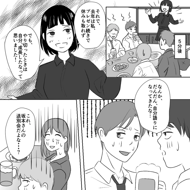 「私の話聞いてますか!?」私の送別会で自分語りを始めたあまり面識がない同僚!皆が話に飽き始めたら突然泣き始めた・・・→その様子を見た先輩の一言でスカッと!