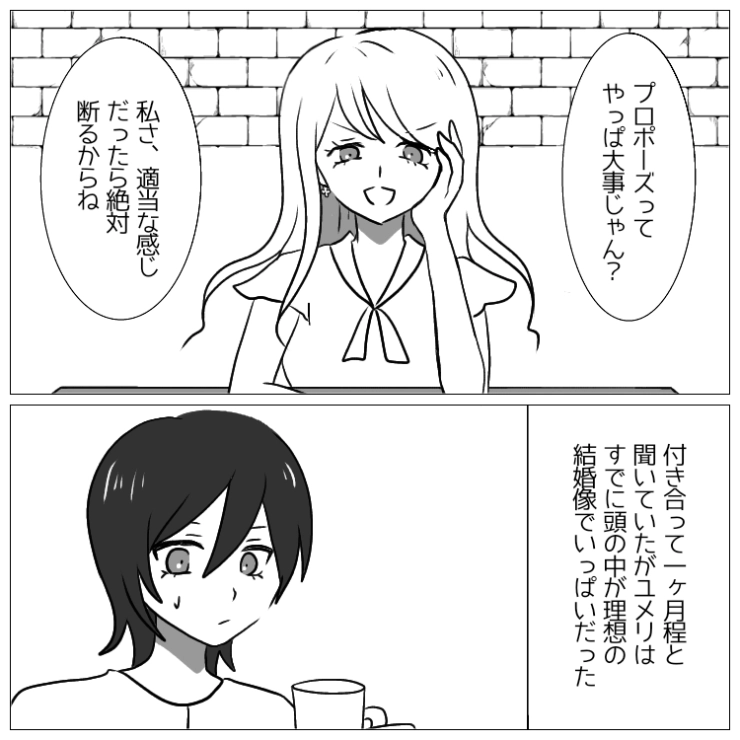 OTHER 2025.08.10「ダサいプロポーズだったらやり直しさせる」付き合って1ヶ月の彼氏に上から目線でワガママを言いまくる友達!やめたなと忠告したが無視した女の末路は・・・衝撃のエピソードを漫画化!今回は彼氏に上から目線のワガママを言いまくる女友達のお話をご紹介します。さすがにひどすぎると思った主人公は忠告したもののそれを無視した女友達の末路は・・・。主人公の友達ユメリは最近彼氏ができたと言うことで話を聞くために久しぶりにお茶をすることにしたようですが、思っていた内容とは全く違ったようで・・・。123#漫画