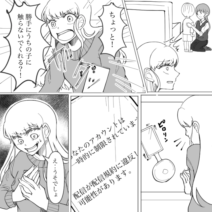 主人公が迷惑ママの子供をあやしている姿を見て急に怒鳴り始めた女。そんなときスマートフォンにアカウント制限の通知が届きました。この後、迷惑ママを待っていた当然の結末は・・・。