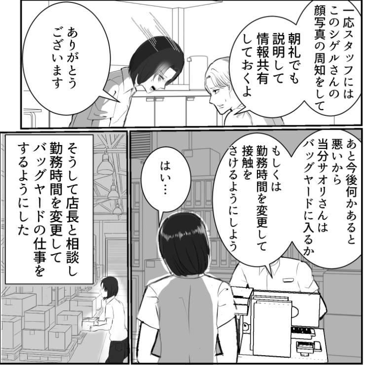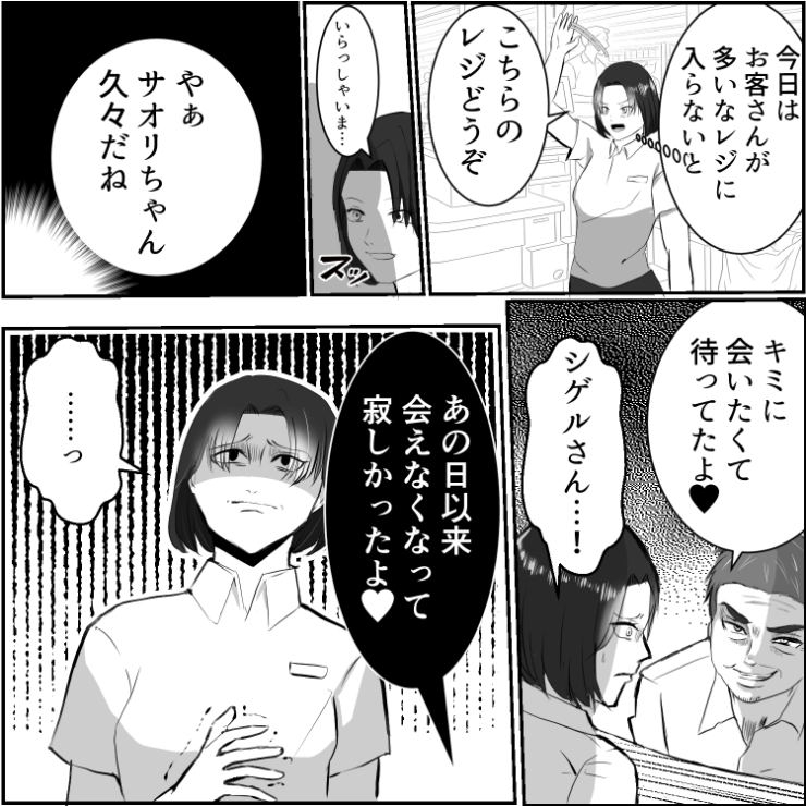 やたらと馴れ馴れしいシゲル。さすがに気持ち悪さと恐怖を感じた主人公。この後、シゲルの行動をある人物が目撃して地獄を見ることに・・・。