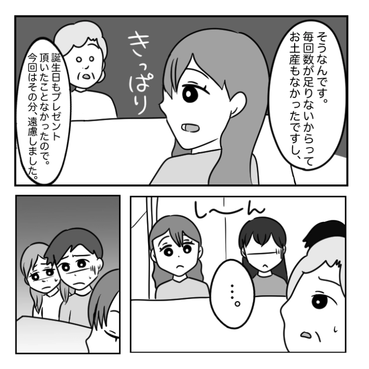 後編/「数が足らないわ。あなたはなしね♡」私の前で親戚にお土産を渡すが私だけスルーの義母!誕生日プレゼントでも同じことをされたので同じことをし返してみた結果・・・