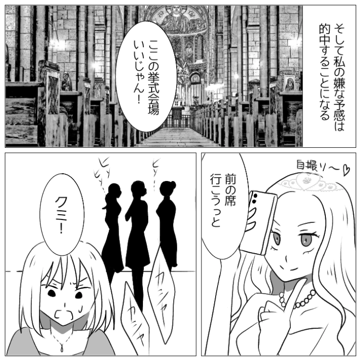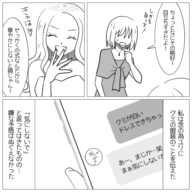 衝撃のエピソードを漫画化!今回は昔から自分が主役じゃないと許せない女友達のお話をご紹介します。共通の友人の結婚式に参列したとき、その女友達はまさかの白ドレスでやってきて・・・。