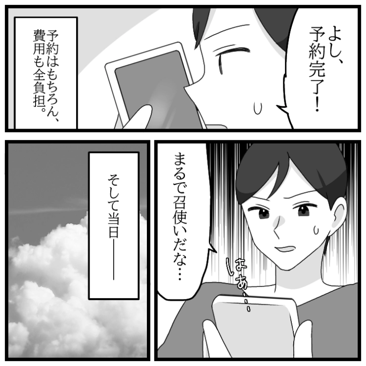 車がないところを指定してきたにも関わらず自分は車を持っていないという彼女。呆れながらも車の手配と運転をすることになった主人公ですが、旅行先で彼女の本性が丸裸になるのでした。