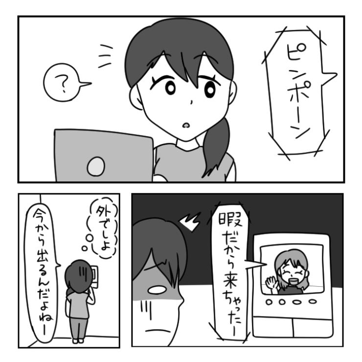 突然やってきた幼なじみ。仕事をしていたので、邪魔されたくなかったものの、無碍にできず仕方なく対応することに。この後、優しい主人公ですら距離を置くことを決意する事件が起こるのでした。