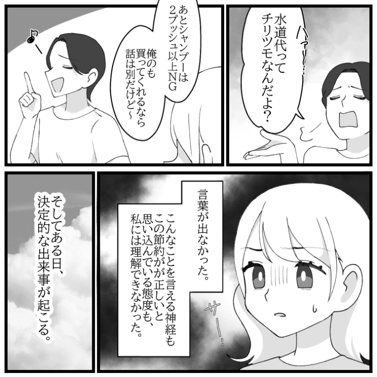 衝撃のエピソードを漫画化!今回は「シャワーは3分以内で浴びて」「真夏でも冷房は30分だけ!」というドケチな彼氏のお話をご紹介します。