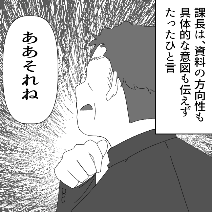 企画書の確認をお願いしても曖昧な指示しかしない課長。この後、被害者の会を結成し、復習するのですが・・・。