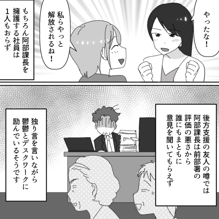 OTHER 2025.09.20「俺の資料参考にして今っぽくして」曖昧な指示しかしないのに、成果物に絶対文句を言ってくる上司!そのせいで毎日終電まで残業に・・・→被害者の会で協力し復讐した話衝撃のエピソードを漫画化!今回は業務の指示を仰いでも「それはいい感じにやっておいて」などテキトーなことしか言わない上司のお話をご紹介します。被害者たちが協力して課長は異動することに。そこでは前評判の悪さから誰も言葉に耳を貸してくれず苦労することになったんだとか・・・。原作・作画/伏見尚子1234#漫画