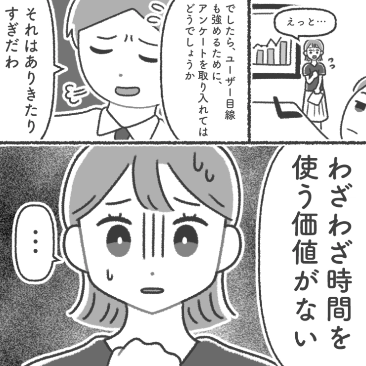 衝撃のエピソードを漫画化!今回は部下が会議で提案する内容を全て頭ごなしに否定だけする上司のお話をご紹介します。