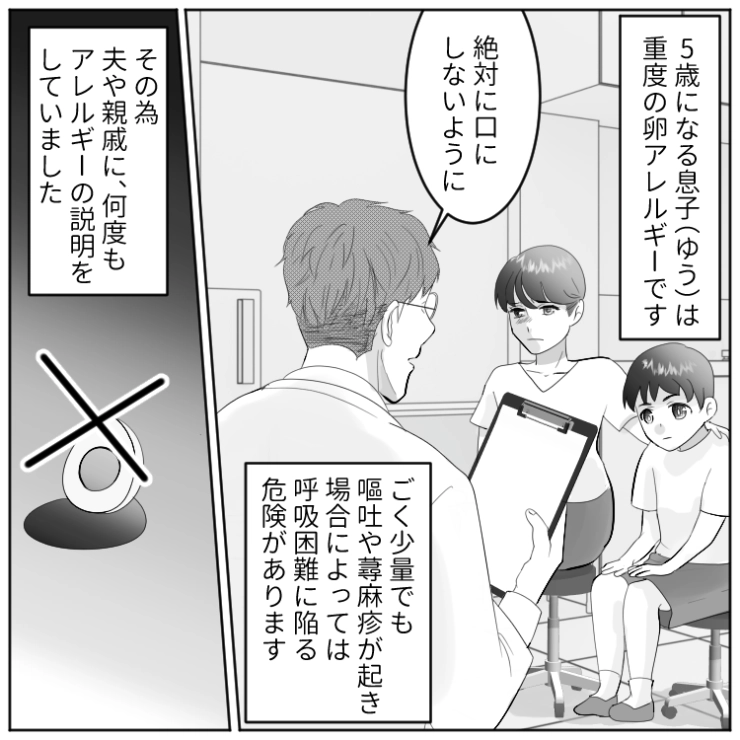 OTHER 2025.10.12「無理やり食べさせれば治る」卵アレルギーの息子に食べさせようとする義母!やめてと言っても私の目を盗んで与えようとする→親戚の集まりでも同じことをしたので・・・衝撃のエピソードを漫画化!今回はアレルギーをただの甘えと言って理解を示さない義母のお話をご紹介します。主人公の息子は5歳のときに重度の卵アレルギーということがわかり、それ以来食べないように細心の注意を払ってきました。123#漫画