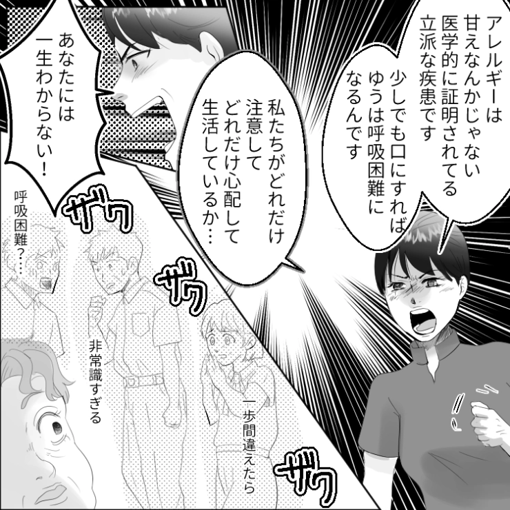 OTHER 2025.10.12「アレルギーは甘え」卵アレルギーの息子に食べさせようとする義母!やめてと言っても私の目を盗んで与えようとする→親戚の集まりでも同じことをしたので・・・衝撃のエピソードを漫画化!今回はアレルギーをただの甘えと言って理解を示さない義母のお話をご紹介します。1234#漫画