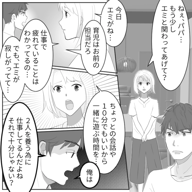 「10分でいいから」とお願いしているにもかかわらず、一切拒否する夫。この後、娘もついに我慢の限界に達して・・・。