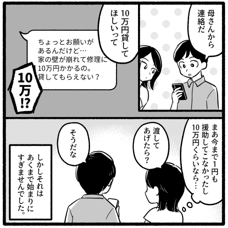 OTHER 2025.10.26「息子でしょ?10万円貸して」毎月大金を要求する義母!合計金額がとんでもないことになり返金を要求しに、義実家に突撃→お金を無心してきた本当の理由がそこにあった・・・衝撃のエピソードを漫画化!今回はある日をさかいにまとまった金額を要求してくるようになった義母とその衝撃の理由のお話をご紹介します。主人公は夫と共働きをしながら暮らしているアラサー女子。ある日、義母からお金の援助依頼がきて・・・。123#漫画